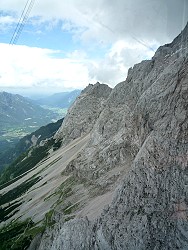 in nur wenigen Metern Abstand steil am Felsmassiv hoch. Das kleine