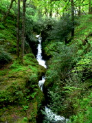 ein Waldgebiet ein. Der Pfad führt vorbei an den Poulanass