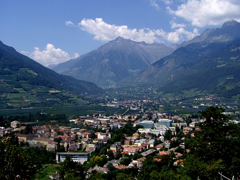 über Meran und die umliegenden Berge. Am besten setzt man sich auf